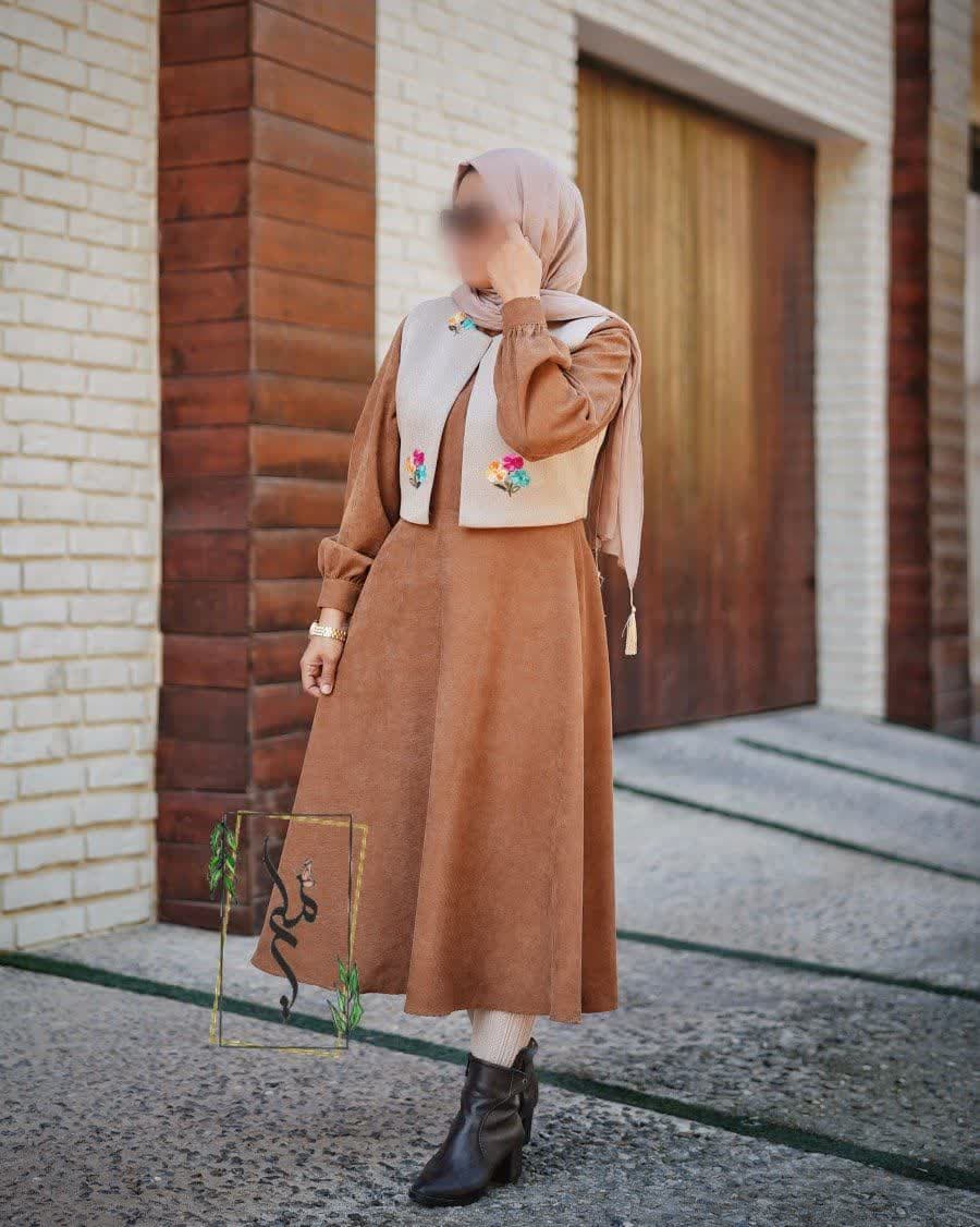 مانتو و ژیله پاییزه مخمل کبریتی مدل